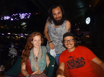 Als ich über Weihnachten in Deutschland weilte, entstand in der Blah Blah Bar eine recht interessante "Bezugsgruppe" für Alex. Da war zum einen Nils aus Belgien, der sich mit seiner Freundin auf einem Motoroller von der Nähe Bangkoks auf den Weg nach Pai gemacht hatte, um festzustellen, dass die Idee gar nicht so spitze war. Schließlich mussten sie den Weg auch wieder zurück, was einen mehrtägigen Ritt erforderte. Zum anderen gab allabendlich Lucas aus Kanada sein Stelldichein, der mit seiner Freundin ebenfalls auf Welttournee war. Weiterhin war da noch Mario aus Dresden, dessen Plan darin bestand, sich als Tattoo-Artist für ein paar Monate in Pai zu verdingen und weiter Richtung Philippinen zu reisen. Abgerundet wurde die Formation von Vito, aufgewachsen in verschiedensten Ländern Osteuropas und seit 1,5 Jahren in Pai und Umgebung wohnend. Der Kitt für die ganze Bande war aber Pigi, der die illustre Runde allabendlich zusammenhielt und sich um deren Hydration sowie musikalische Bespaßung kümmerte. So hat man sich gemeinsam - zu Klängen von Angelic Upstarts bis Schleimkeim - meist gut gelaunt über die zu Hauf vertreten Teilzeithippies aus Europa gewundert, über die ungläubigen Blicke bzgl. der ausgefallenen Bar-Optik anderer Reisender gefreut oder einfach nur gemütlich in den Abend hineingelebt.