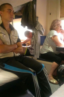 Geschrei weckt mich. Ein Ohrstöpsel ist rausgefallen. Der Kommandant schreit nach Obama. Er hat eine Colaflasche verschüttet und die muss aufgewischt werden. Seine Augen sind glasig. Ich beginne zu begreifen: Der Kommandant ist rabenvoll. Mir ist nur nicht ganz klar, wie er es geschafft hat, diesen Zustand zu erreichen. Ich habe nicht einmal eine Flasche Hochprozentiges auf seinem Tisch gesehen, nur sehr häufig eine Limonadenflasche. Da muss ihm wohl jemand etwas ins Glas geschüttet haben. Wahrscheinlich er selbst. Heimlich. Die Hustfrau ist sauer. Sie hat Cola auf ihre Leggings bekommen. Auch der beige Victor und der schweigsame Dolce-und-Gabana-Junge scheinen genervt. Ein älterer Herr mit Schnauzbart kommt vorbei und ermahnt den Kommandanten. Für ein paar Minuten kehrt Ruhe im Abteil ein. Aber schon eine kurze Weile später benimmt sich der Kommandant wieder wie ein vollkommener Idiot. Ich glaube, die Hustefrau wünscht sich die Miliz herbei, ich mir den Schlaf und stecke mir wieder meine Ohropax ins Ohr.