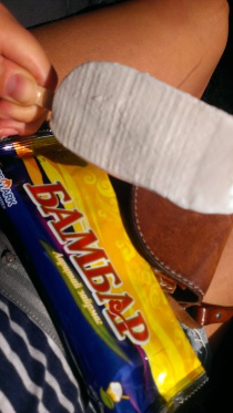 Wir danken und sind gespannt auf die mongolische Eiscreme: gierig reißen wir das Papier auf!