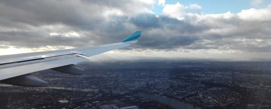 Die Anschnallzeichen leuchten auf. Der Rumpf des Airbus senkt sich kaum merklich. Zwischen einigen Wolkenfetzen erhasche ich einen Blick auf akkurat abgesteckte Weidenvierecke. Erstaunlich grün für diese Jahreszeit. Aber nicht verwunderlich, ist es doch laut des Wetterberichts ein sehr warmer Dezember. In meinen Tagträumen von diesem Moment hat es immer geregnet und der kalte Wind nur so gepfiffen. Nach monatelangen heißen Temperaturen wollte ich es möglichst ungemütlich haben, wenn ich aus dem Flieger steige. Verwunderlich, wonach es einem sehnen kann.... Ich kneife meine Augen zusammen, um besser sehen zu können. Und da erspähe ich sie, zwei dunkle Türme, die in den grauen Tag ragen: Der Kölner Dom. Ich bin zu Hause. So gut wie. Beinahe möchte ich heulen. Der Anflug auf den Köln/Bonner Flughafen hat begonnen. Ich bin aufgeregt. Wahnsinnig aufgeregt. Niemand, bis auf eine ganz kleine Gruppe Eingeweihter, weiß, dass ich gerade über ihnen schwebe und nicht, wie vermutet, Weihnachten in Thailand verbringe. Mein erster Schritt zurück auf heimischem Boden ist surreal, bin ich doch vor nur knapp 11 Stunden in den Flieger gestiegen. Kürzer als die Busfahrt von Siem Reap/Kambodscha nach Don Det/Laos. Ich trenne mich am Gepäckband von meiner Flugbekanntschaft und haste zum Flughafenbus. Ein halbes Jahr habe ich einen 10-Euroschein mit mir durch acht Länder geschleppt. Jetzt kann er endlich seinen Nutzen erfüllen und mich nach Bonn bringen.