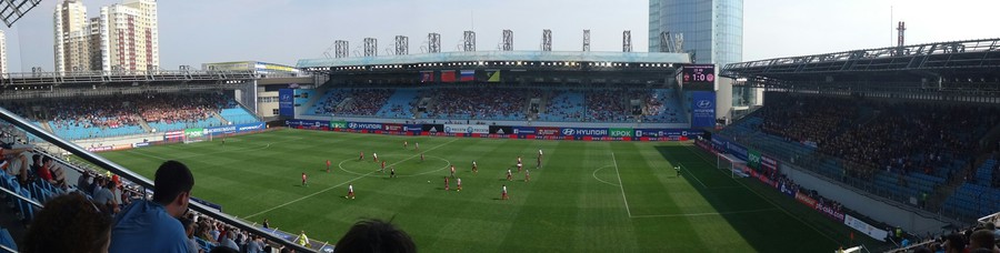 In einer Stunde soll der Tabellenführer ZSKA Moskau die nicht ganz so nahen Nachbarn Amkar aus Perm empfangen. Da das Luschniki momentan renoviert wird, findet das Spiel in der ca. 20km nördlich gelegenen Chimki Arena statt. Das Stadion kann man getrost als lieblos-funktional bezeichnen. Es versprüht in etwa so viel Charme wie der Brita-Stall zu Wiesbaden, nur dass mehr Beton statt Blech verarbeitet wurde. Ähnlich robust sieht das Vorprogramm aus: Zwar verzichtet man auf diverse Danksagungen an lokale Energieerzeuger und Wirtschaftsgrößen, dafür werden die Tribünen mit schwerster elektrischer Schrottmusik zugepumpt, so dass sich die Frage stellt, ob man auf einer Großbaustelle sei oder im Zappelbunker stehe. Püntklich zum Spielbeginn wachen die Kurven auf. Mit mächtig lautem Wechselgesang beider Hintertortribünen werden Amkars Ohren erst einmal zum Wackeln gebracht. So können die Zuschauer die Verunsicherung der Gäste förmlich greifen und zwangsläufig folgt das erste Highlight gleich in der ersten Minute: Flanke aus dem Halbfeld, drei (!) Permer rennen sich gegenseitig um und ZSKA-Stürner Musa kann nur noch regelwidrig im 16m-Raum gestellt werden. Den Strafstoß verwandelt Natkho humorlos. Der Rest des Spiels ist schnell erzählt: Perm kann nicht, ZSKA will nicht. Eine strammer Schuss aus 18 Metern nach schöner Körpertäuschung von Tosic bringt das 2:0 kurz vor dem Pausentee. Apropos Körpertäuschung: Musa hat einen rabenschwarzen Tag. Bei jeder Aktion täuscht er nicht nur den Gegner, sondern sich gleich mit, tritt Luftlöcher und verstolpert etliche Chancen allein vor dem Tor. Erwähnenswert ist lediglich noch der Heiterkeit verbreitende Tribünenpogo hinter den Toren in Halbzeit zwei. Dass der eine oder andere begnadete Tänzer dabei kopfüber ein paar Sitzreihen nach unten marschiert, wird augenscheinlich gerne in Kauf genommen. Abpfiff, Abreise, alles gediegen.