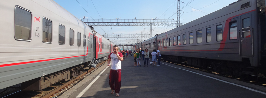 Endlich sind wir an der Reihe und ich halte dem Schaffner in der grauen Bahn-Kluft mein Ticket und meinen Reisepass erwartungsvoll hin. Er checkt beide Dokumente sehr gewissenhaft, nennt meine Sitznummer und weist mit seinem Finger den Weg ins Innere des Wagons Nummer 12. Am Samowar vorbei schlängele ich mich mit meinem Rucksack-Ungetüm so galant wie möglich an den anderen Fahrgästen entlang und scanne die Nummern an den Betten nach meiner ab. Beinahe wäre ich über eine Tasche an meinem Bett Nr. 21 vorbeigestolpert. Eng ists hier. So recht, weiß ich nicht wohin mit meinem Rucksack und wuchte ihn ersteinmal vorsichtig, ohne jemandem mit den Schüren ein Auge auszupeitschen, auf die rote Sitzbank. Im Wagon steht die Luft. 54 Leute in der Holzklasse und keine Spur von Klimaanlage. Ein wenig Panik steigt in mir auf. Naja, das wird schon, denke ich mir. Vielleicht wird die Belüftung erst angeworfen, wenn sich der Zug in Bewegung setzt. Ich sacke neben meinem Rucksack auf den Sitz und versuche, mich so wenig wie nur möglich zu bewegen. Stattdessen lasse ich meine Augen über unseren Teil des Wagons schweifen. Mir gegenüber, durch einen kleinen Tisch getrennt, sitzt ein älterer Herr. Auch hier in Russland scheint Beige eine sehr beliebte Kleidungsfarbe für Menschen über 60 zu sein. Wenn es zwischen den Ländern auch manchmal kulturelle oder politische Barrieren gibt, über die Farbe Beige denken die Rentner dieser Welt wohl ähnlich. Über ihm baumeln die Beine eines jungen Russen im Dolce-und-Gabana-Jogginganzug. Eine hervorragende Idee, denke ich, und nehme mir vor, sobald sich alle Leute auf ihren Plätzen eingerichtet haben, auch meine gemütlichen Sachen aus dem Rucksack zu kramen. Meine Gedanken werden durch das rasselnde Husten der korpulenten älteren Dame auf dem Sitz am Gang unterbrochen. Flink fischt sie ihr Asthmaspray aus der Handtasche, pumpt ein paar Schübe in ihren Rachen und widmet sich dann wieder ihrem Handyspiel. Den Geräuschen zu Folge könnte es Snake sein. Ich bete, dass die Gute ihren Rekord nicht heute knacken möchte. Augenscheinlich werden meine Gebete erhört. Ihr Spiel wird jäh von einer fliegenden Händlerin, die während der Zug noch steht durch die Abteile eilt, unterbrochen. Auch ohne profunde Russischkenntnisse kann ich verstehen, dass sie wirklich sehr passioniert ihre "schönen" Kristallgläser anpreist. Acht an der Zahl. Zu Anfang scheint es, als wolle die Hustefrau abwiegeln. Doch die Händlerin weiß zu überzeugen. Die Hustefrau wuchtet ihre massiven Vorbau nach vorne und beugt sich interessiert über das Kristall im Karton. Ihre wurstigen Finger streichen über das Glas. "Wieviel", scheint sie zu fragen. Die Händlerin nennt einen Preis. Die Hustefrau ist einverstanden und nun im Besitz acht vorzüglicher Gläser, die sie nun keuchend versucht, unter ihrem Sitz zu verstauen. Im Laufe der Zugreise wird sie in Sibirien auch noch ein Paar vorzüglicher, dicker Socken erwerben. Ich hoffe für die Dame, dass es in Russland kein QVC-Pendant gibt.