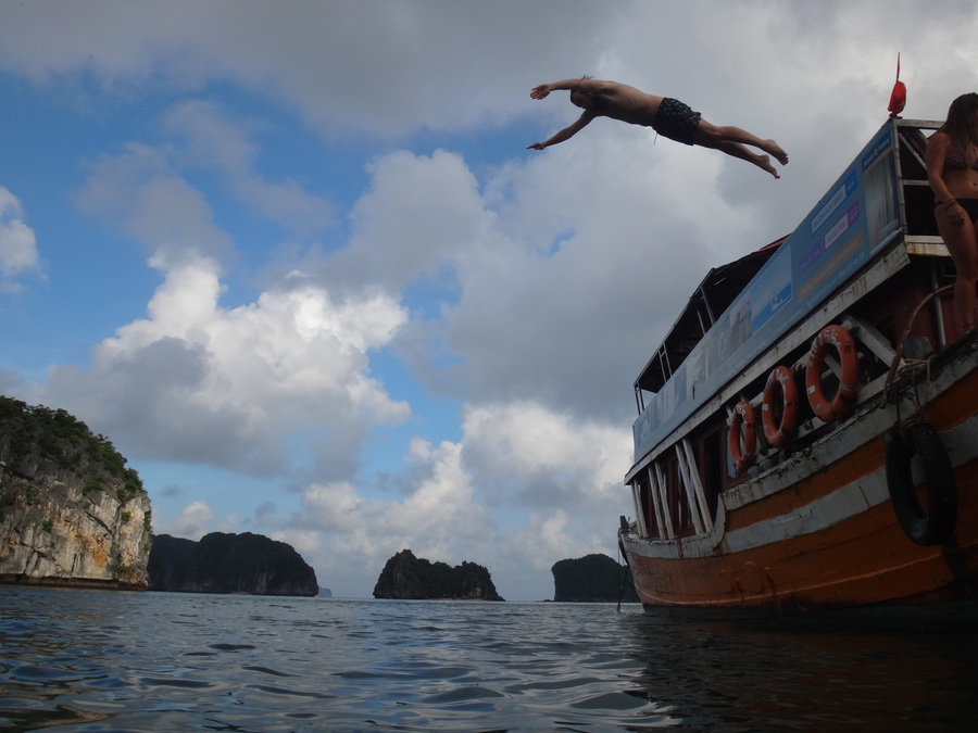 Unsere erste Erfahrung machten wir in Hanoi, als wir einen mehrtägigen Ausflug an und in die Halong Bucht machten. Wir waren zu diesem Zeitpunkt noch ziemlich erschöpft von unserer mehrwöchigen Anreise aus St. Petersburg. Das lag wohl an der Tatsache, dass wir die gesamte Strecke nach Nordvietnam per Bus und Bahn abgerissen hatten. So jedenfalls kam es, dass wir die Tour direkt im Hostel gebucht hatten. Entgegen verschiedenster Angebote in der Innenstadt war dies zwar etwas teurer, aber wir hingen noch dem Gedanken "you get what you pay for" nach - was im Wesentlichen ja auch stimmt. So stapelte man uns ganz nach dem Tetrisprinzip in einen Minivan und karrte uns aus den engen Gassen der vietnamesischen Hauptstadt an den Stadtrand. Dort wurden wir samt anderer menschlicher Bausteine in einen etwas größeren Bus gestapelt und los ging die Reise. Bei schönstem Wetter tauschten wir uns auf dem Ausflugsboot mit unserem Guide über das Land samt seiner Bevölkerung aus und stellten währenddessen fest, dass alle Mitausflügler bei verschiedenen Touranbietern gebucht hatten - mit unterschiedlichen Preisen. Na gut, passiert und ist egal. Schließlich ist die Landschaft viel zu beeindruckend, als dass man sich darüber Gedanken machen sollte.