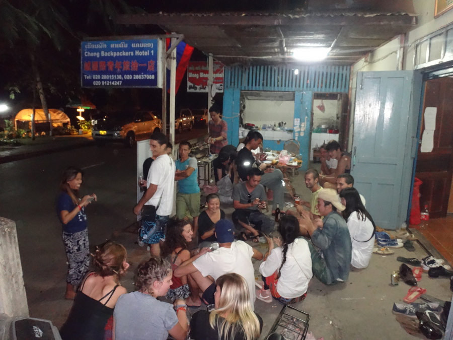 Es war Ende November und ich war mit unserer kleinen Reisegruppe, bestehend aus meinem Reisekumpanen Alex, der Französin Sego, Joshua aus Hannover und dem Israeli Aviv in dem miesesten Hostel der Stadt abgestiegen. Nun, was soll ich sagen, der Preis stimmte. Aber auch das schimmelige Bad und die mit wahnsinning dünnen Matrazen belegten Holzpritschen taten der Stimmung keinen Abbruch. Am wenigsten ließen sich die anwesenden Chinesen von diesem doch recht dürftigen Ambiente beirren. Ying ließ sich sogar so weit hinreißen, mir im gebrochenem Englisch zu verklickern, dass das Hostel ein "sehr schönes HOTEL sei!" Vielleicht meinte er die Atmosphäre unter den Gästen, denn die war wirklich sehr angenehm. So nett, dass Ding kurzerhand eine Barbeque-Party anberaumte. Seine Freunde und Landsleute, die ich meist nur, inklusive Ying, vor dem Hostel Kette rauchen sah, wuselten schon gegen Mittag durch die kleine Küche, um genügend chinesische Grillspezialitäten vorzubereiten. Und die konnten sich sehen lassen. Als ich mich am Abend aus der Stadt zurück gen Hostel aufmachte und die Uferpromenade des Mekong hinanblief, konnte ich das hell lodernde Barbeque schon aus der Ferne sehen und gleichzeitig auch schon die leicht beschwipsten Chinesen hören. Ruckzuck bekam ich ein Bier in die eine Hand und einen geschmorten Schweinespieß in die andere. Ein paar gegrillte Kartoffeln später war die Party im vollem Gang und die Terrasse füllte sich stetig. Die jungen Chinesen ließen es sich nicht nehmen, jeden, der auf der Straße vorbei lief, prompt einzuladen. Auf dem Höhepunkt der rauschenden Sause erklärte mir Li, eine junge Chinesin, dass jetzt die ganze Partygemeinschaft mal kurz zusammen mit ihr drei Straßen weiter zu einem Hotel müsste. Denn dort seien zwei frischvermählte Landsleute abgestiegen und würden ihre Hochzeit feiern. Ob sie die Leute kennen würde, fragte ich. Nein, sagte Scho, aber es gäbe gutes Karma, würden wir dorthin gehen und gratulieren. Schien mir nicht besonders selbstlos, aber wenns hilft .... Ob dem wirklich so ist, kann ich nicht sagen, denn zu diesem Zeitpunkt war es wahrscheinlich schon zu spät für mich. Ich hatte meine Karmapaybackkarte wohl einmal zu oft zu Hause gelassen.